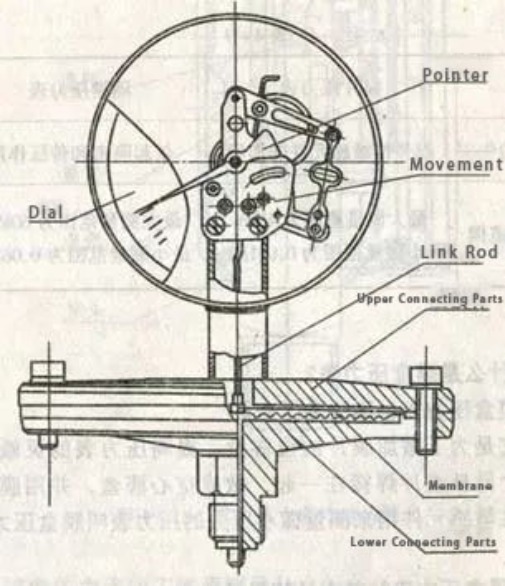 Bajo la influencia de la presión, el medio de trabajo medido actúa directamente sobre el diafragma elástico. El diafragma sufre deformación elástica hacia arriba (para medir la presión positiva) o hacia abajo (para medir la presión negativa). A través del mecanismo de la biela fijado en el centro del diafragma, impulsa el eje de engranaje del mecanismo para girar, lo que hace que el puntero indique el valor de presión medido en la escala.